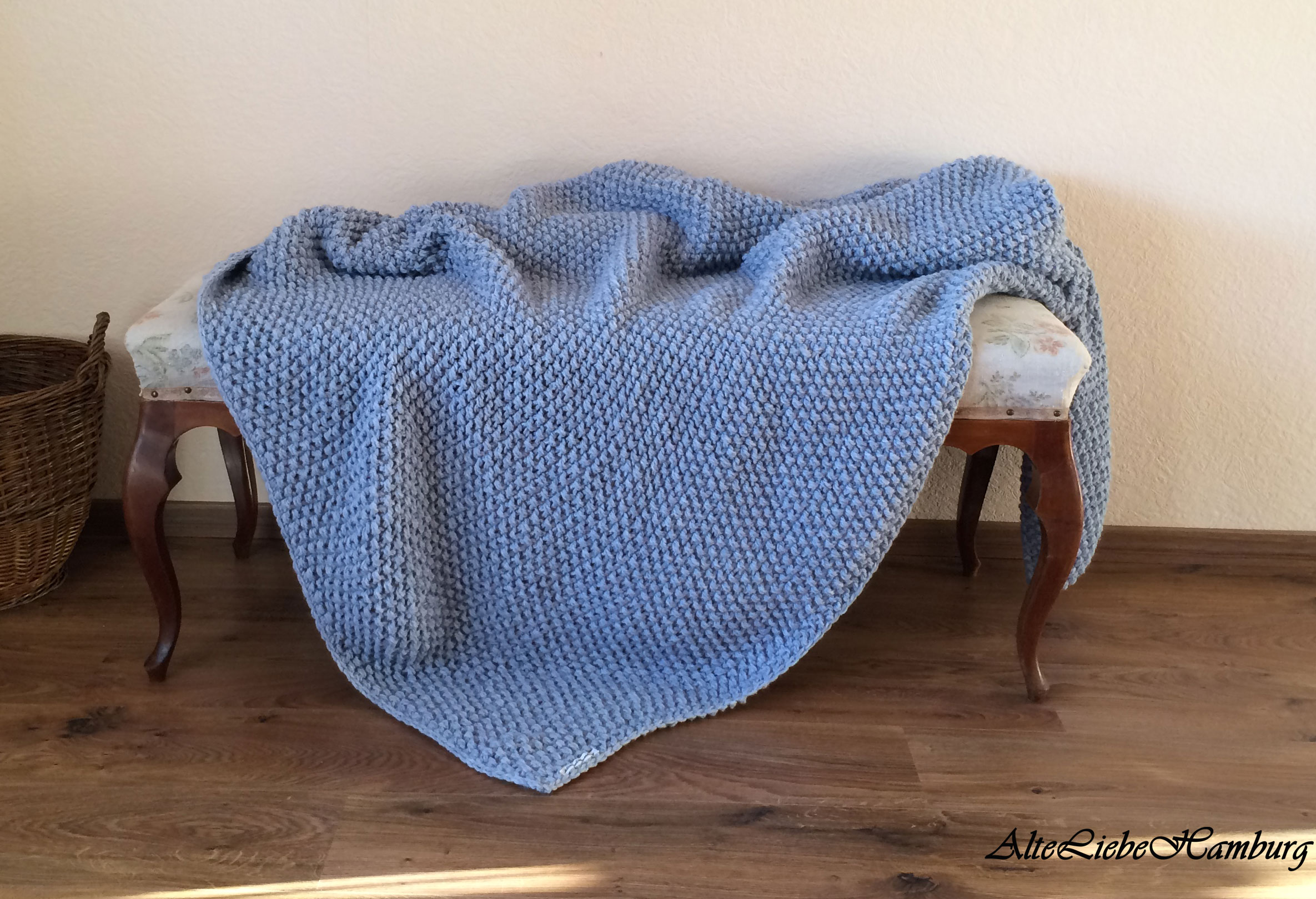 Zwei Tagesdecken kamen dieses Wochenende ganz frisch von der Stricknadel und beide gibt es ab sofort im Shop von AlteLiebeHamburg bei Etsy zu kaufen: Ein hübsches Plaid in einem mittelgrauen Farbton mit Fransen und eine Wohndecke in blau-melange, die sich auch als Bettüberwurf sehr gut eignet. Beide Modelle können sie auch in Ihrer Wunschgröße anfertigen lassen. Hierzu erfahren sie mehr auf meiner Homepage www.AlteLiebeHamburg.de. Machen sie eine gute Woche, wenn möglich in einem warmen Zuhause!