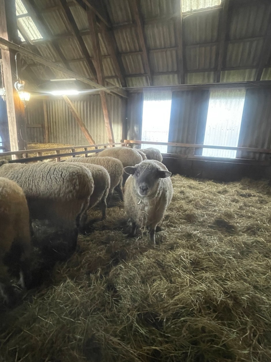 ich bin ein Wollschäfchen und stehe hier ganz gemütlich im Stall. Draußen ist es kalt, aber mich kümmert das nicht besonders. Meine Wolle hält mich schön warm und es ist Stroh um mich herum. Das hält auch warm.