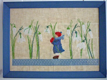 Das Frühlingskind ist nach einem Stickmuster von acufactum auf Leinen gestickt und in einen dunkelblauen Holzrahmen hinter Glas gerahmt. Hier geht es zum Frühlingskind…