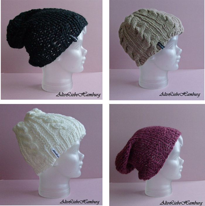 Schöne warme kuschelige handgestrickte Mützen gibt es ab sofort hier im Shop von AlteLiebeHamburg zu kaufen. In verschiedenen Farben, mal grob gestrickt oder auch mit feinem Zopfmuster. Die neuen Schals sind in Arbeit und warten ab nächster Woche im Shop auf Dich. Schau doch mal vorbei!