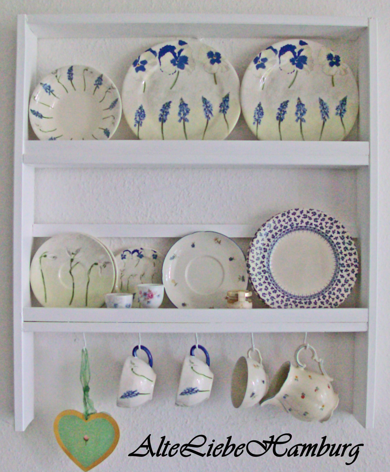 Mit viel Liebe und Leidenschaft habe ich ein Tellerregal gebaut. Die Idee kam mir, als ich mir überlegte, dass ich gern meine Wand mit meinem Lieblingsgeschirr schmücken möchte. Also fuhr ich zu einem Markt, der Holz, Schrauben, Nägel und Farbe anbietet und kaufte alle Artikel, die ich für das Tellerregal benötigte. Anhand einer eigens erstellten Skizze baute ich dann ein Tellerregal zusammen. Den Nachfolger meines entworfenen Tellerregals kannst Du in meinem DaWanda-Shop AlteLiebeHamburg kaufen oder direkt bei AlteLiebeHamburg per Mail an AlteLiebeHamburg@web.de.