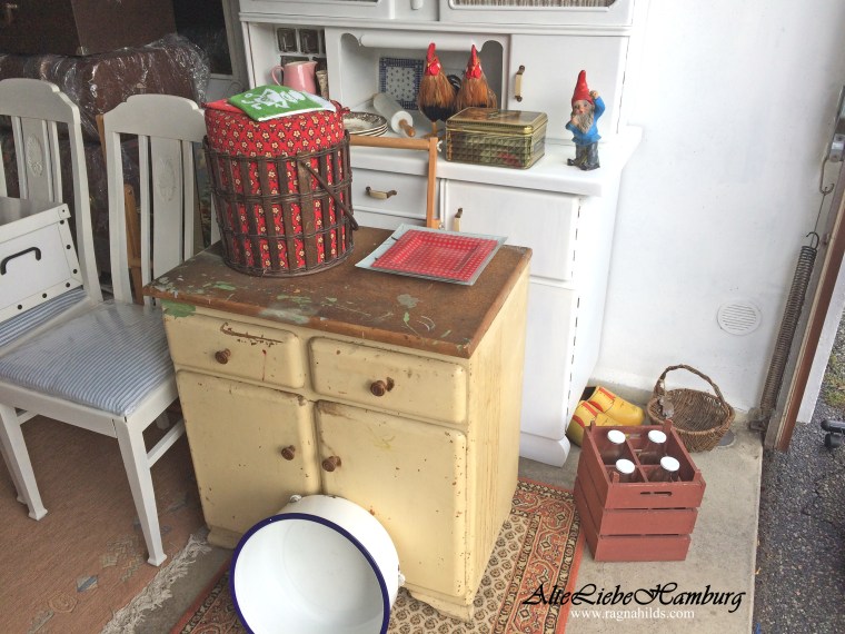 Dann waren da noch zwei Zwerge (schon wieder 🙂 ) und vier sehr hübsche Teller und ein Nähkorb und ein Nudelholz mit Marmorrolle und eine alte Mondamin-Blechkiste aus Hamburg und vieles weitere mehr. Die Sachen stehen dann demnächst in meinem Shop zum Einkauf bereit.