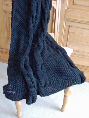 Decke / Plaid mit Zopfmuster grob gestrickt